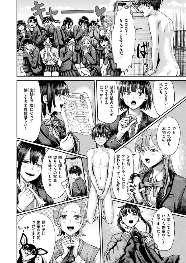 「童貞…くださいッ!!!!!」(×12)卒業式の日、女子たち憧れの美男子・望月(もちづき)くんから第二ボタンをもらうため、学年も性格もバラバラの女子たちが屋上に大集合。ボタン争奪戦から始まり、あれよあれよと脱がされパンイチにされてしまう望月くん。カラダじゅう触られ、すっかり勃起してしまった望月くんの反応にキュンキュンしまくり女子たちの暴走はさらに加速していく――多人数×露出×羞恥プレイで魅せるぐりえるもワールド!驚異の作画密度で展開する屋上青春物語。出しても出しても終わらない、前代未聞の野外乱交スタート♪