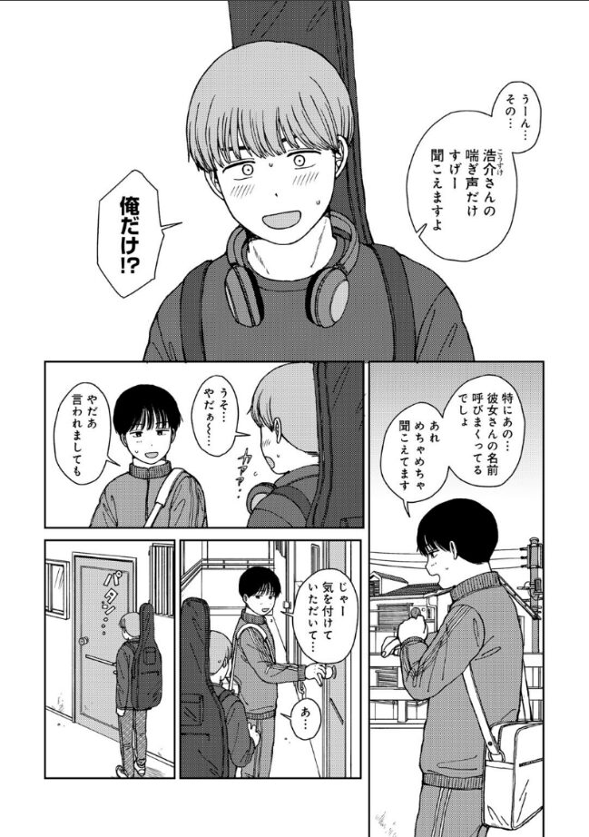 『え〜…もしかして…俺ってヤってる時の声でかいの…?』隣に住む男子●校生から、夜のセックスの声が漏れていることを指摘された浩介。彼女の声が大きいことを謝ろうとするが、聞こえているのは浩介の喘ぎ声だけらしく…。ショックを受けた浩介は、’今日はセックスをしない’という固い決意を胸に、彼女の水希を家に招くのだが、ヤる気まんまんの水希はどうにかしてセックスへと持ち込みたく…?可愛さ満点の絵柄で描き出す、とびきりキュートな我慢比べエッチ!(COMICキスハグvol.3 掲載作品)