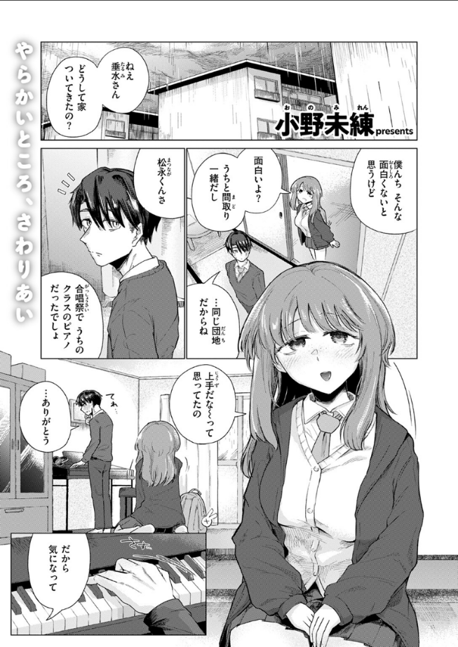 (あたしが上手にできるのは ほんとにこれくらいだから)親に振り向いてほしかった松永(まつなが)くんと家庭教師のお兄ちゃんに捨てられた美羽(みう)。それぞれに重い事情があり、心の隙間を埋めるなにかを求めていた。大人に翻弄される2人の傷の舐め合いSEXーー