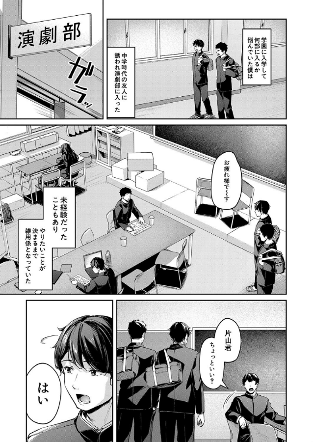 演劇部に入部した主人公は、雑用として勤しんでいた。そんな折、先輩の女生徒・西田がコスプレのデザインを作っていたことをきっかけに話をするようになった。ある日、先輩からコスプレアカウントを見せられて自作のコスを見せられる。コスの写真の撮影までも手伝うことになるのだが、過激な先輩に主人公は振り回されてばかりで……!