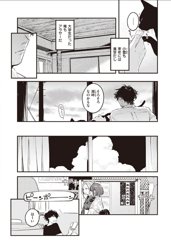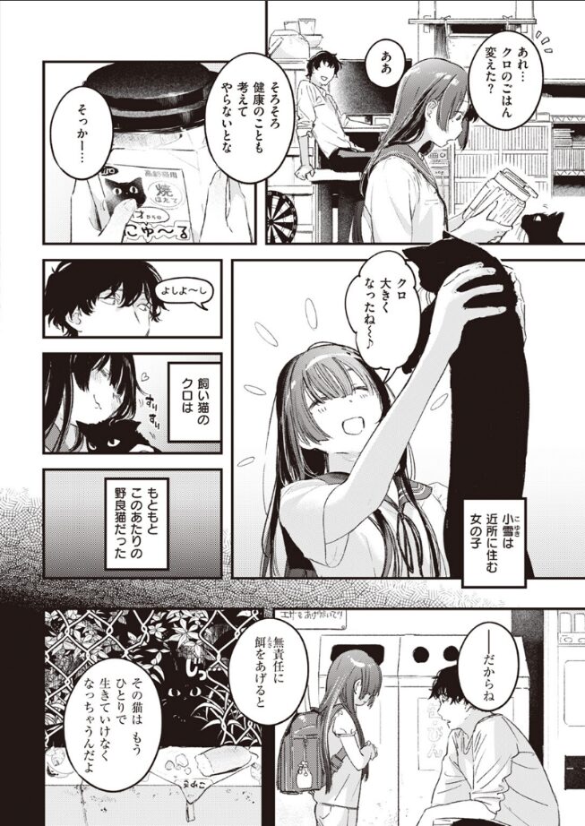 捨て猫をきっかけにアパートに入り浸るようになった小雪(こゆき)。出会いの頃は大学生だった男もアラサーになり、まだ幼かった小雪は美しい娘へと成長した。「……そろそろ、潮時なのかもな」いつか終わる関係性。小雪の幸せを願い《誰か》の元へ送り出そうとする男だったが……