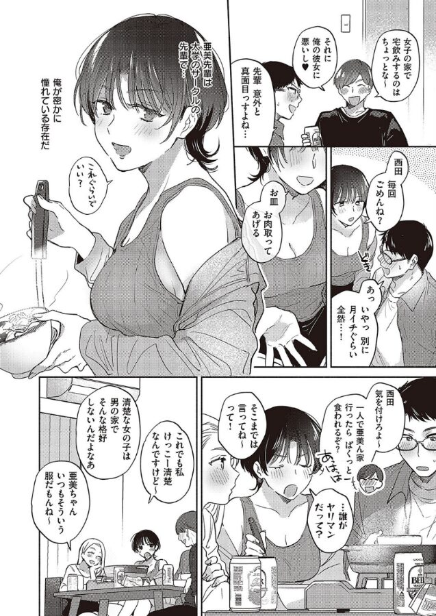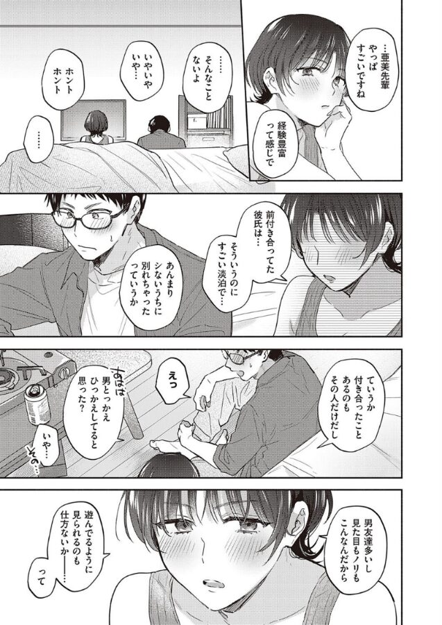 ある日、自宅で大学の先輩たちと飲み会を終えた西田は、密かに憧れていた亜美先輩と二人きりに。いつもの悪ノリから圧倒されっぱなしで経験豊富に見える亜美先輩だけど、実は経験人数は元カレひとりだった!?亜美先輩がシてほしいこと、全部シてあげたい…。「今夜は使い切るぐらいシていーよ」不器用な二人は今夜、互いの身体で恋をする──。いちゃラブ界の革命児・めえお先生が描く甘酸っぱ&もどかしラブ!!